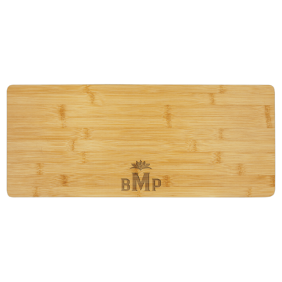 This beautiful bamboo charcuterie / cutting board is a perfect size for serving your guests a variety of goodies! Cutout handles at the bottom of the board leave a solid, no hole surface on top. Personalized this charcuterie/cutting board makes a perfect gift for any occasion. |